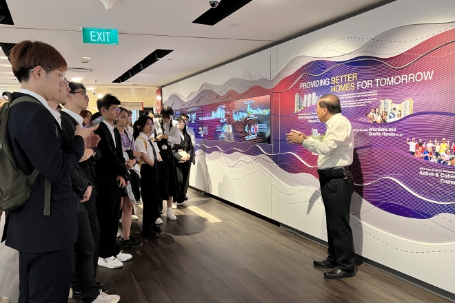 访学营结束前,同学们来到新加披建屋发展局进行参访。建屋发展局是新加坡政府部门,成立于1960年,主要负责新加坡居住新镇的规划、建设和管理。实现“居者有其屋”,让贫困大众都有自己的住房,是新加坡的基本国策。新加坡的公共住房政策、分配及管理体系,以及智慧城市建设、都市发展及交通、环境永续发展等方面都给人以启发,让同学们受益匪浅。